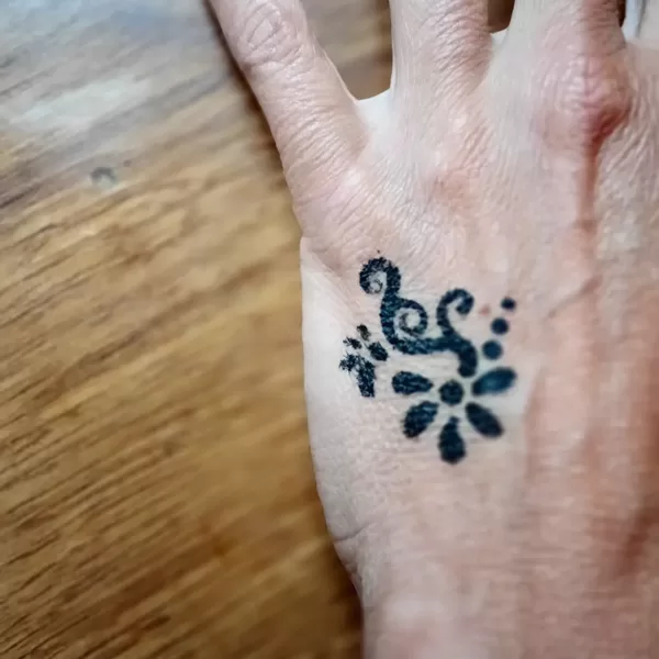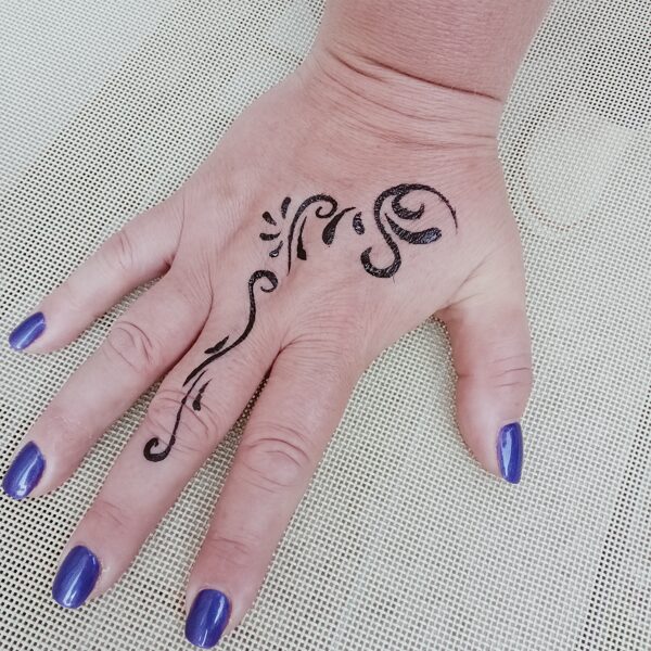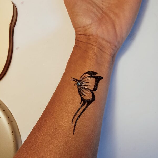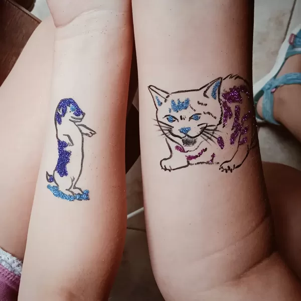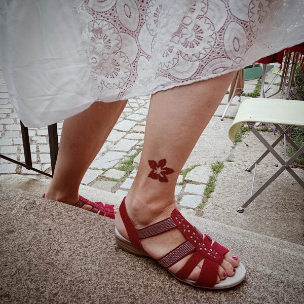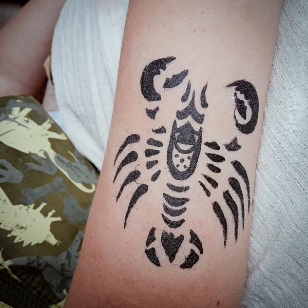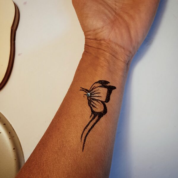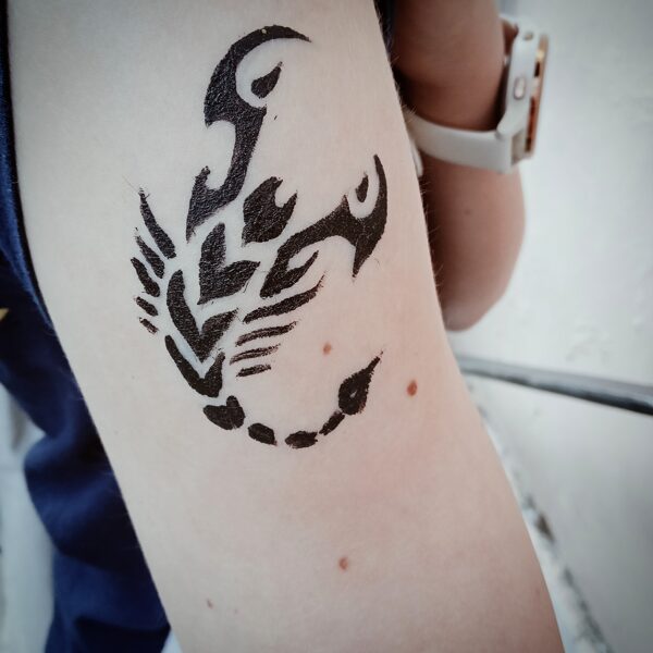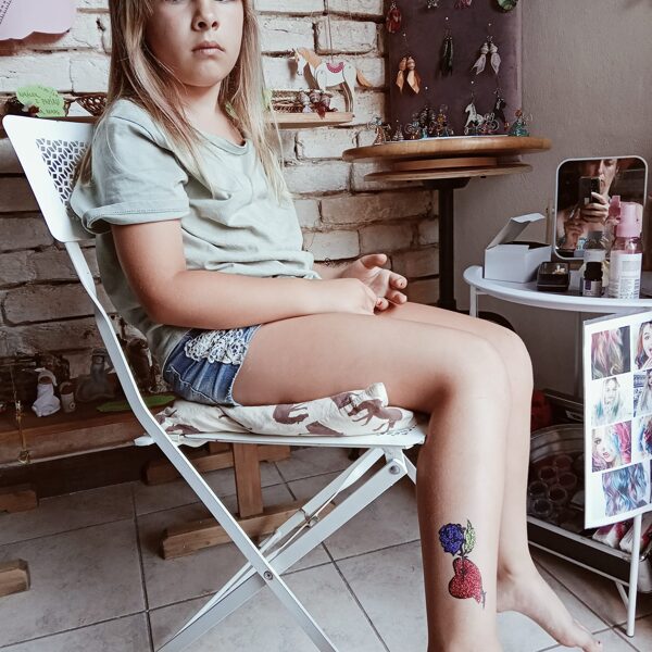 Ke zdobení těla a dočasnému tetování používáme kosmetické tělové inkousty (po domluvě lze i hennu nebo jaguu), kosmetické třpytky a flitry, které na kůži vydrží i několik dní.