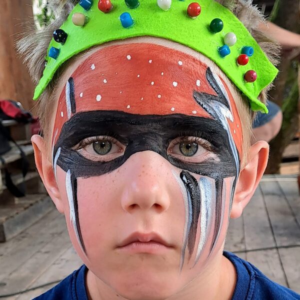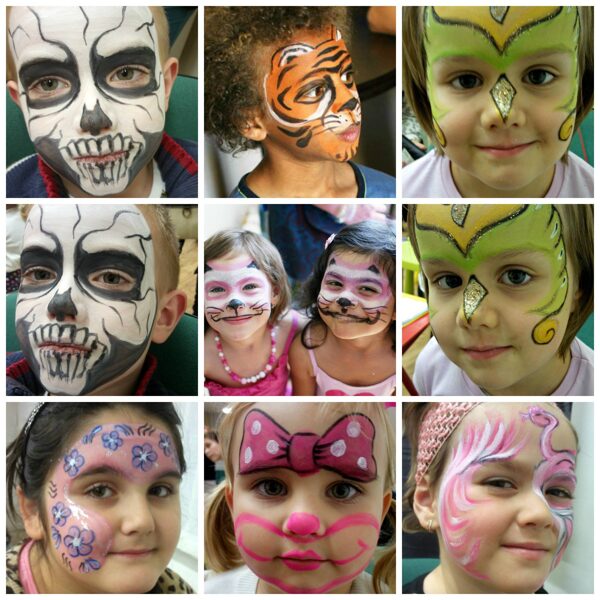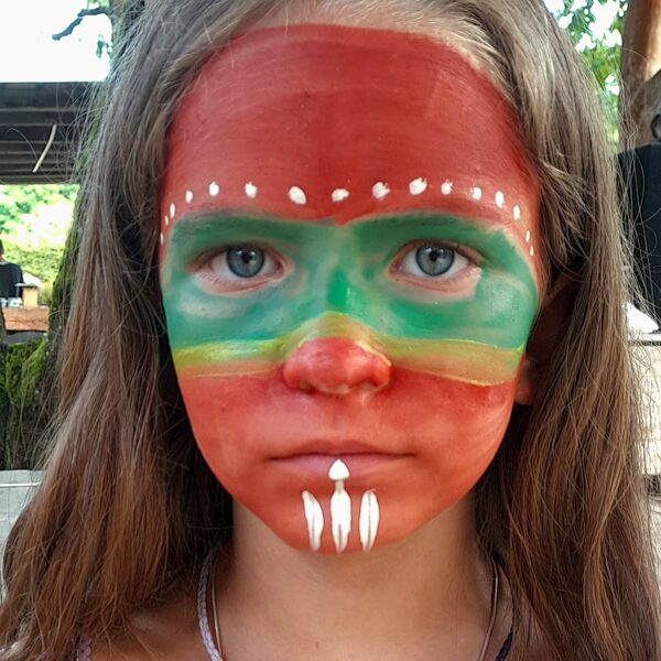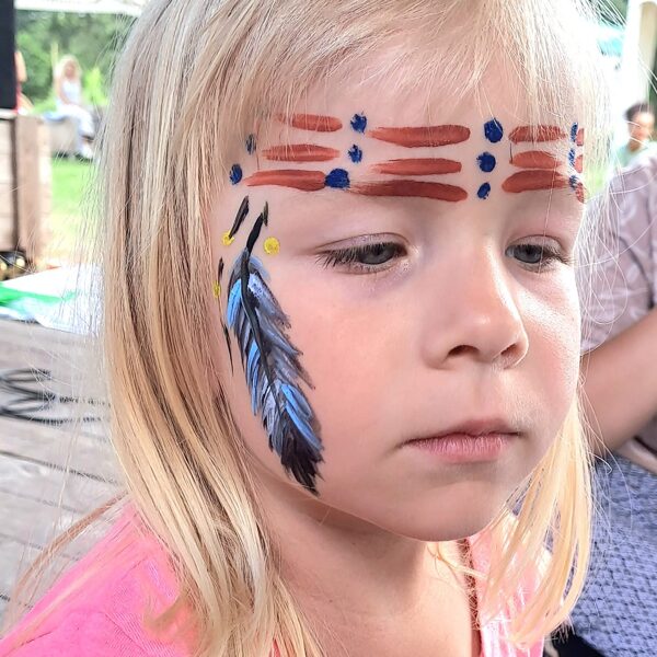 Najdete u nás nejen klasické malování na obličej, ale také třeba indiánské nebo elegantní zdobení obličeje dospělých žen (nejedná se o klasické líčení!) Používáme kvalitní hypoalergenní barvy na bázi kokosového oleje.