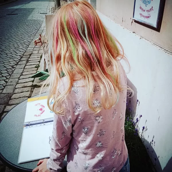 Na barvení vlasů používáme kosmetické vlasové křídy.